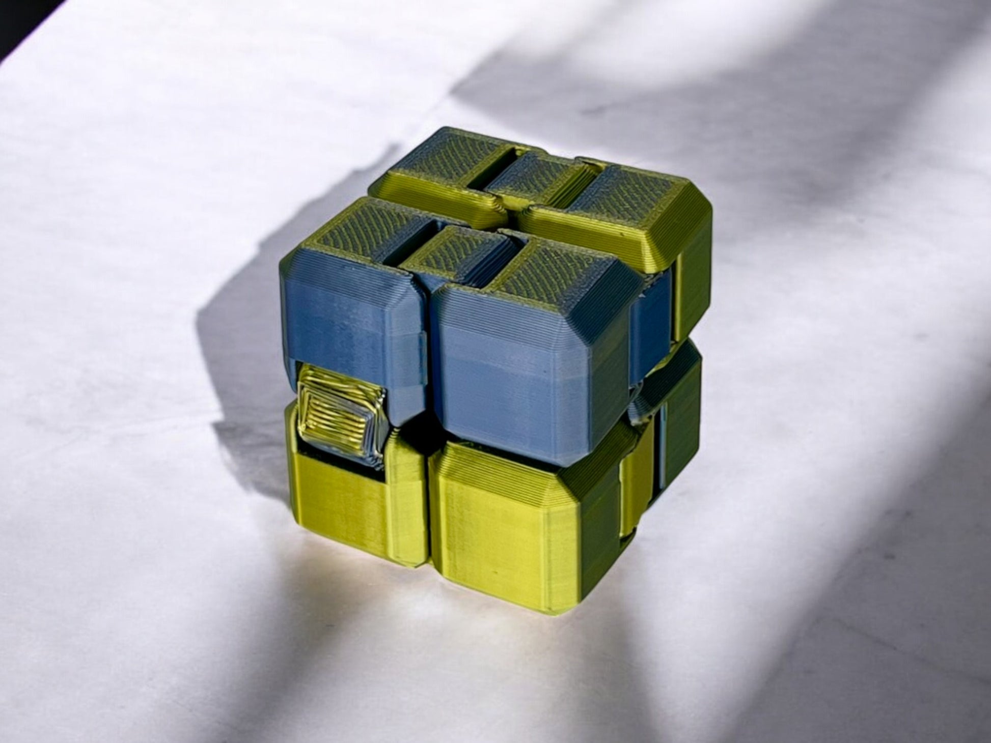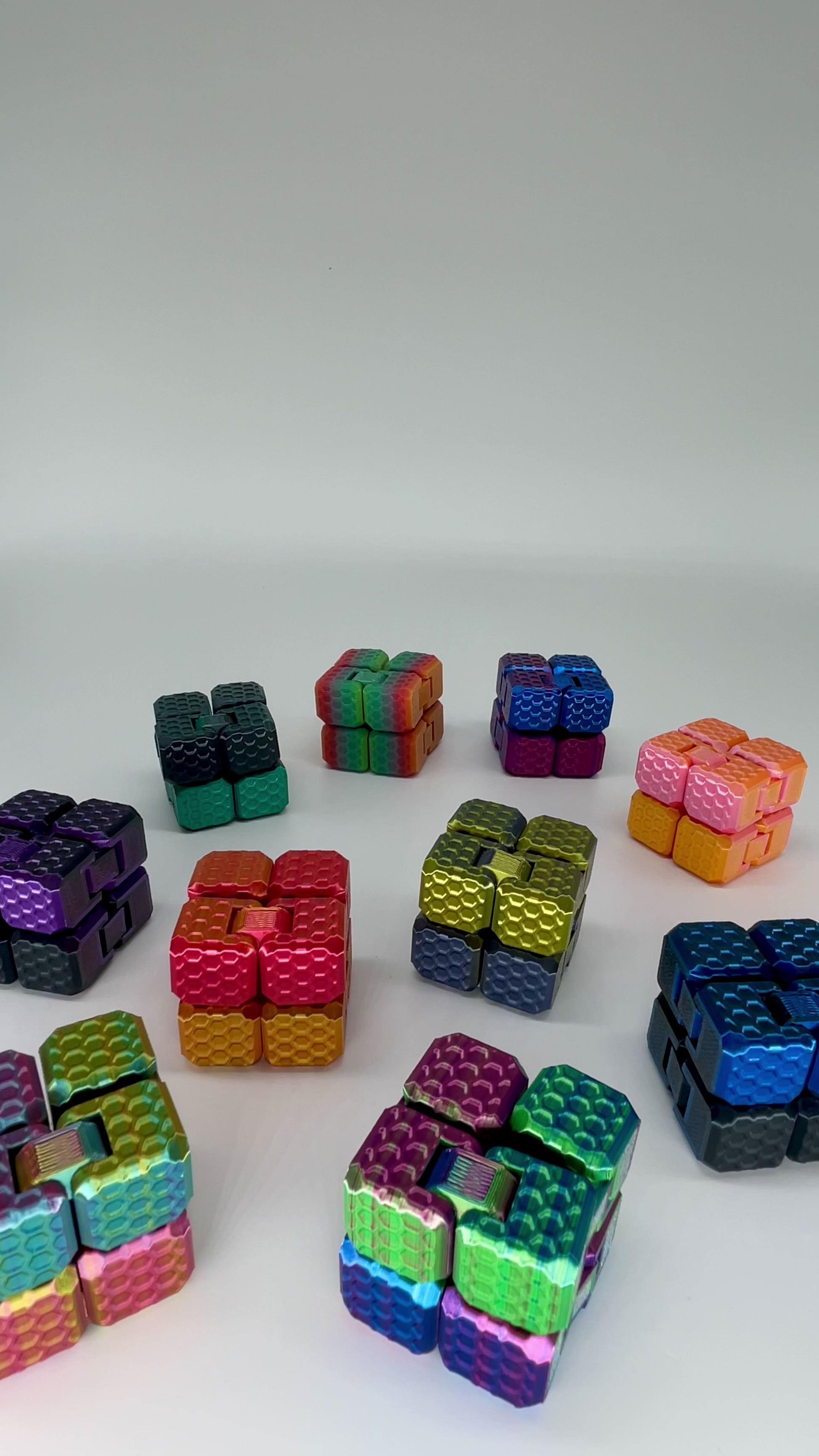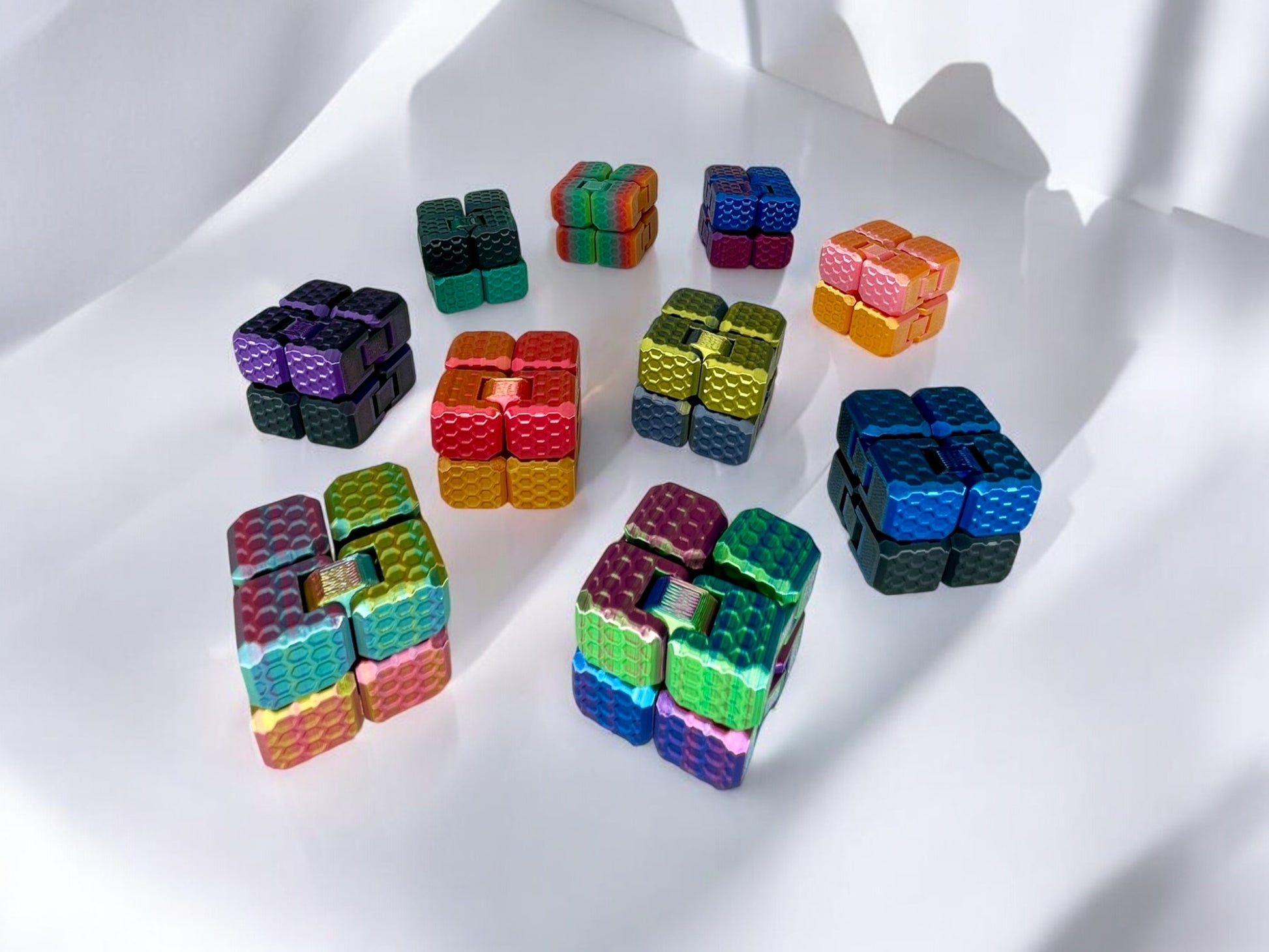 Ein Infinity Cube (=unendlicher Würfel) ist ein bewegliches Fidget Toy, das aus acht kleinen Würfeln besteht, die sich immer wieder, praktisch unendlich, in verschiedene Formen klappen lassen – ideal für stressfreies Spielen und maximale Entspannung.