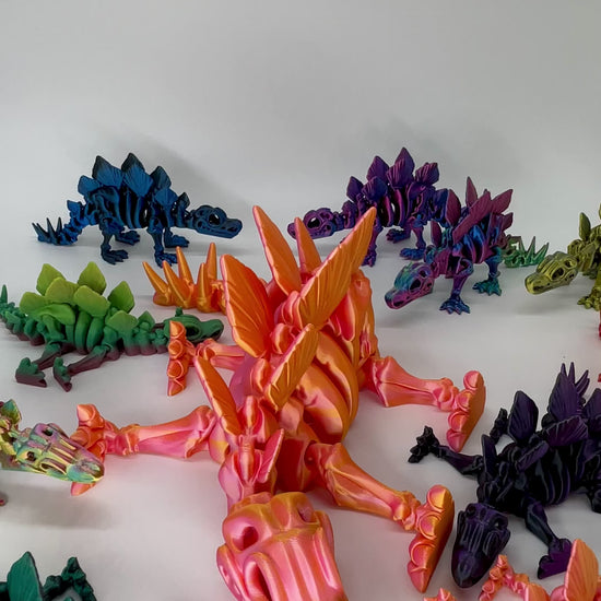 Der bewegliche Stegosaurus ist in drei Größen erhältlich und kann in vielen Farben bestellt werden, von zweifarbigen Varianten bis hin zum Regenbogen. Mit seinen Gelenken kannst du ihm verschiedene Posen geben, wodurch er lebendig wirkt. Hergestellt mit modernster 3D-Drucktechnologie, bietet er hohe Detailtreue und Langlebigkeit.